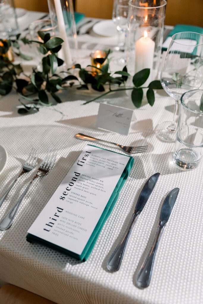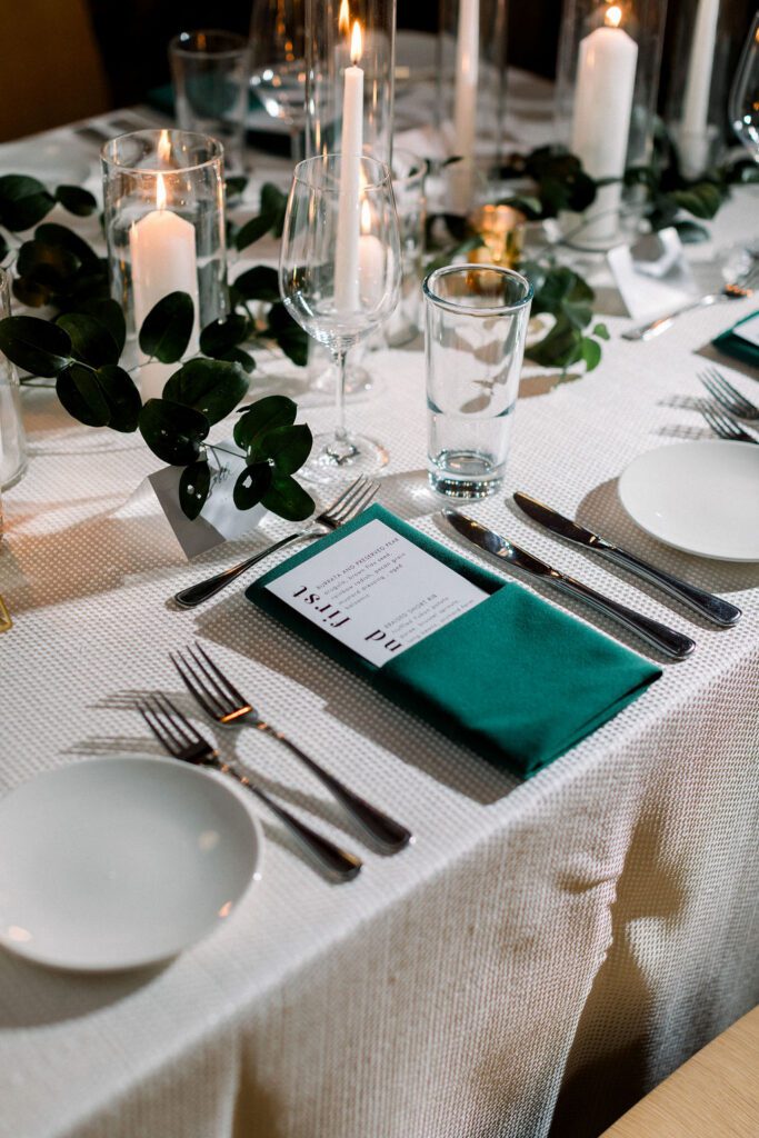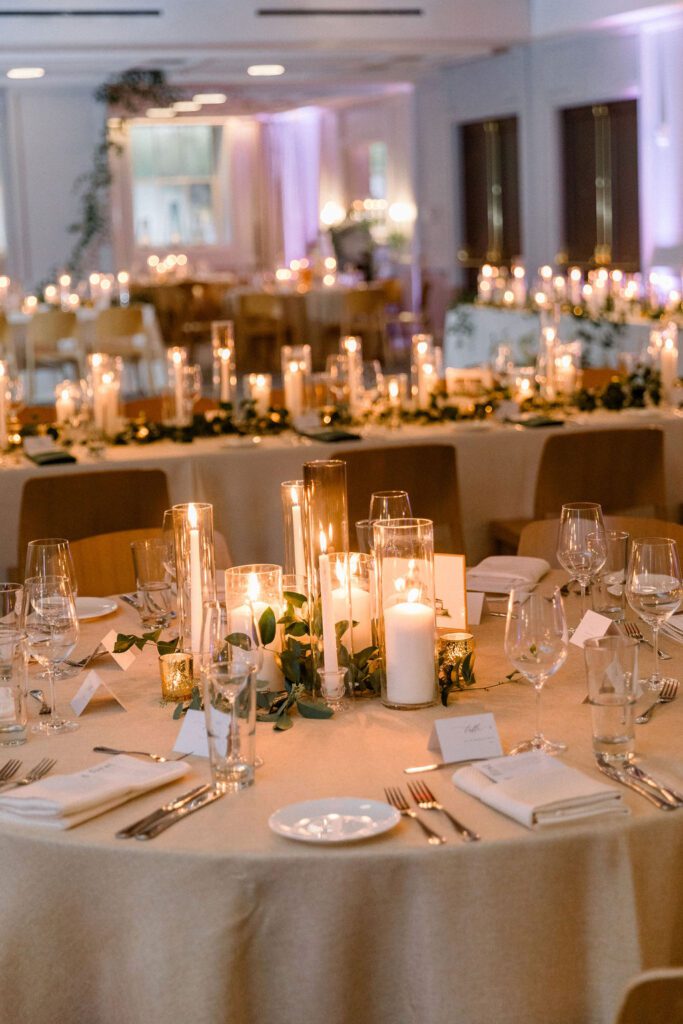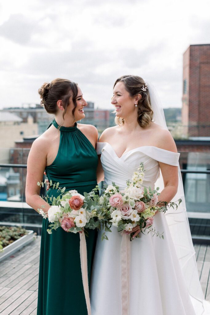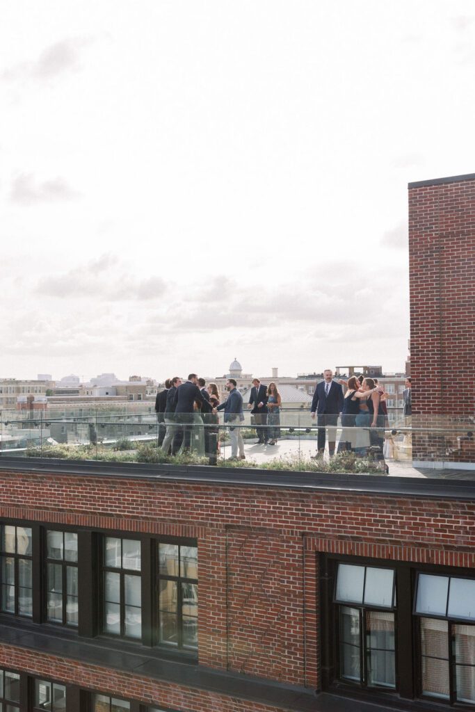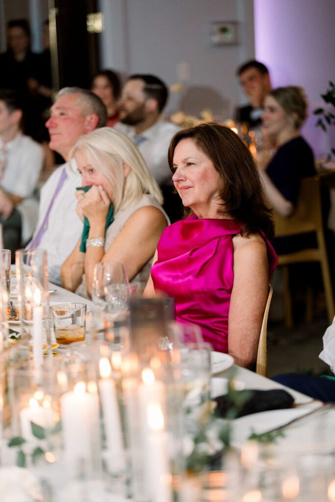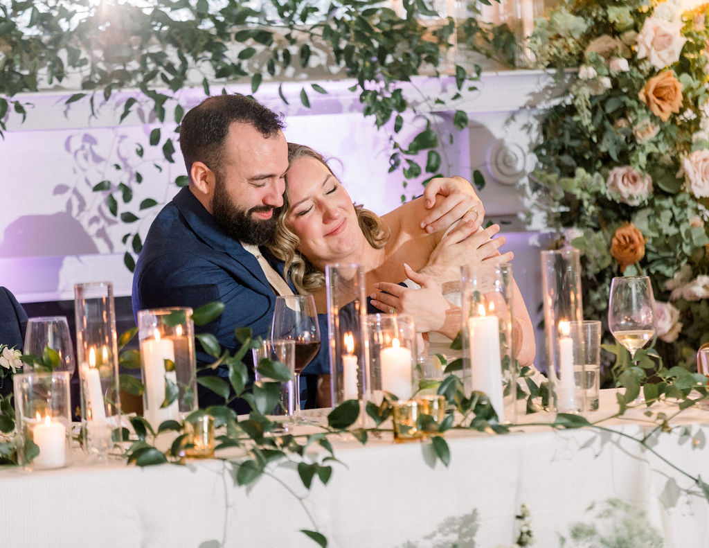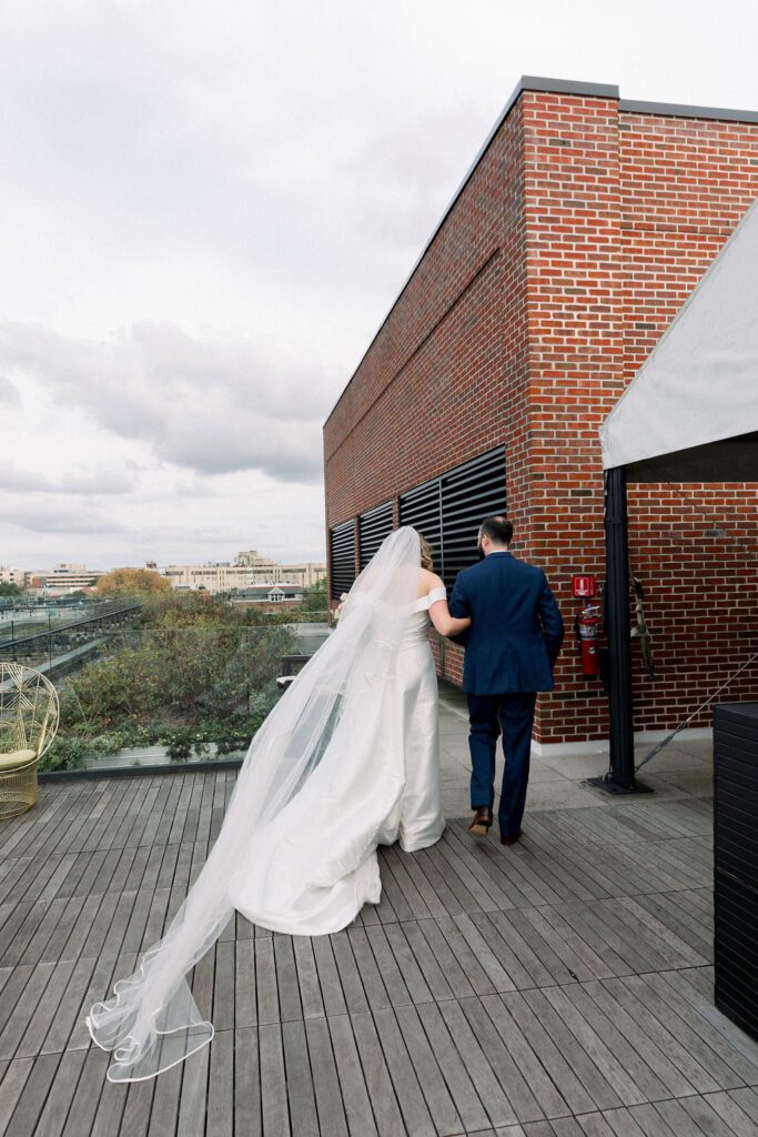 Their wedding was on the rooftop underneath the permanent tent, with the chandeliers adorned with greenery and flowers to soften the space. Their friend officiated their ceremony, which was probably the sweetest and funniest ceremony I’ve ever heard.