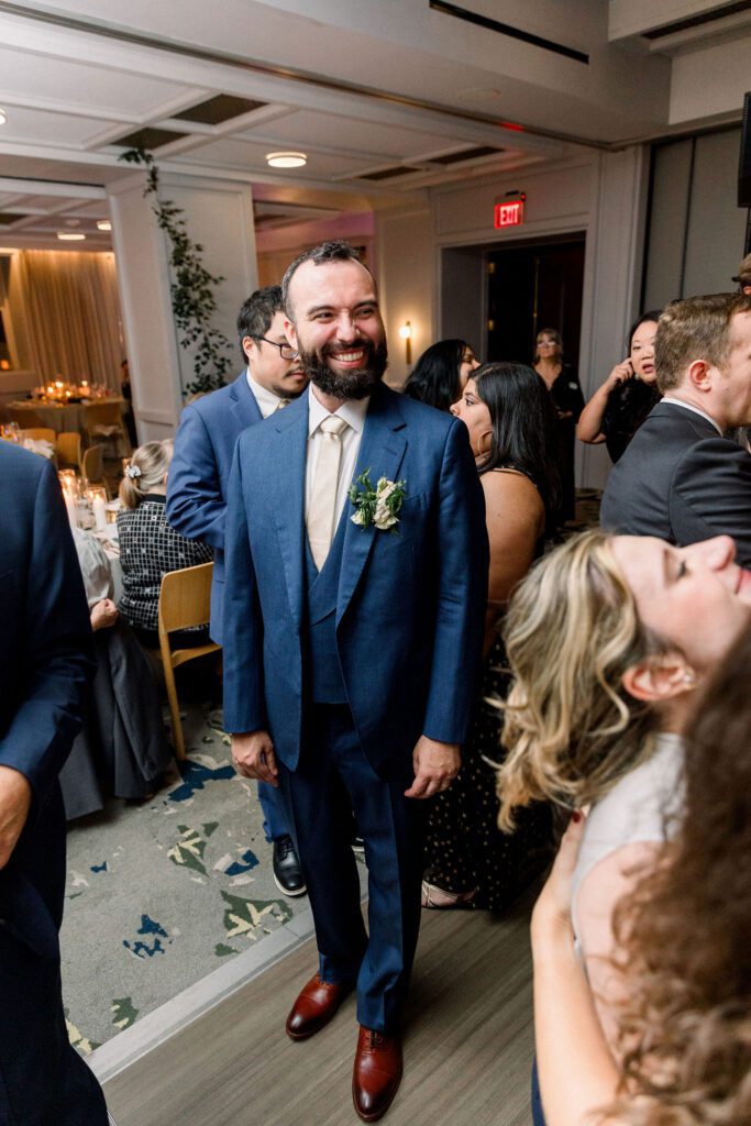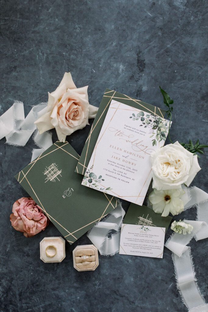 Planning & Design – Peña & Co. / Photographer – Birds of a Feather Photography / Venue – The Line DC / Florist – Gott Efni / Band – Bachelor Boys Band / Hair and Makeup – Priscilla M Beauty / Linens – Select Event Group / Cake – Jisoo Cake Design / Bridal Boutique – Global Bridal Gallery / Groom’s Custom Suit – Huntsman New York / Bridesmaid Dresses – Azazie / First dance choreography – Yours Truly Dance / Invitations & signage – Zazzle / Barber – @pantea.cannon / Custom Table Numbers – Ellie Dawn Designs