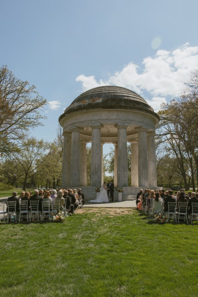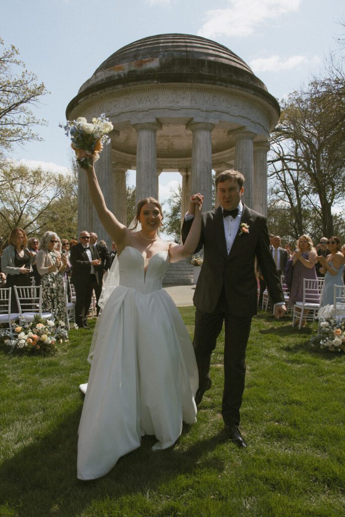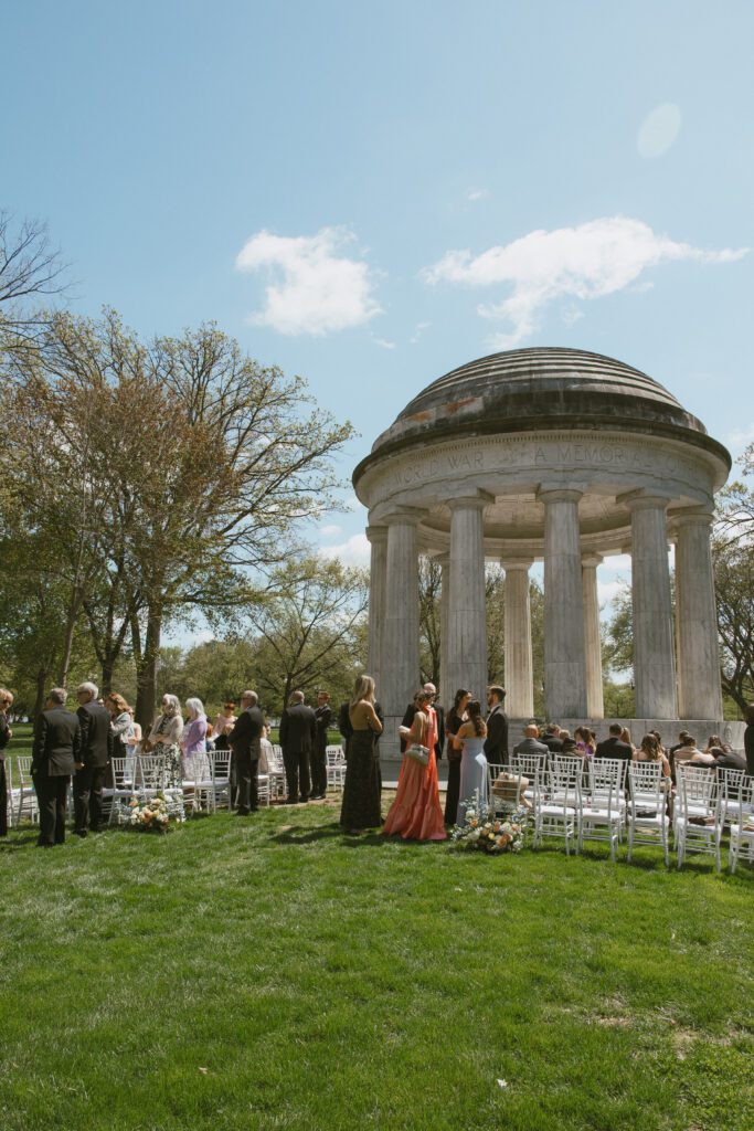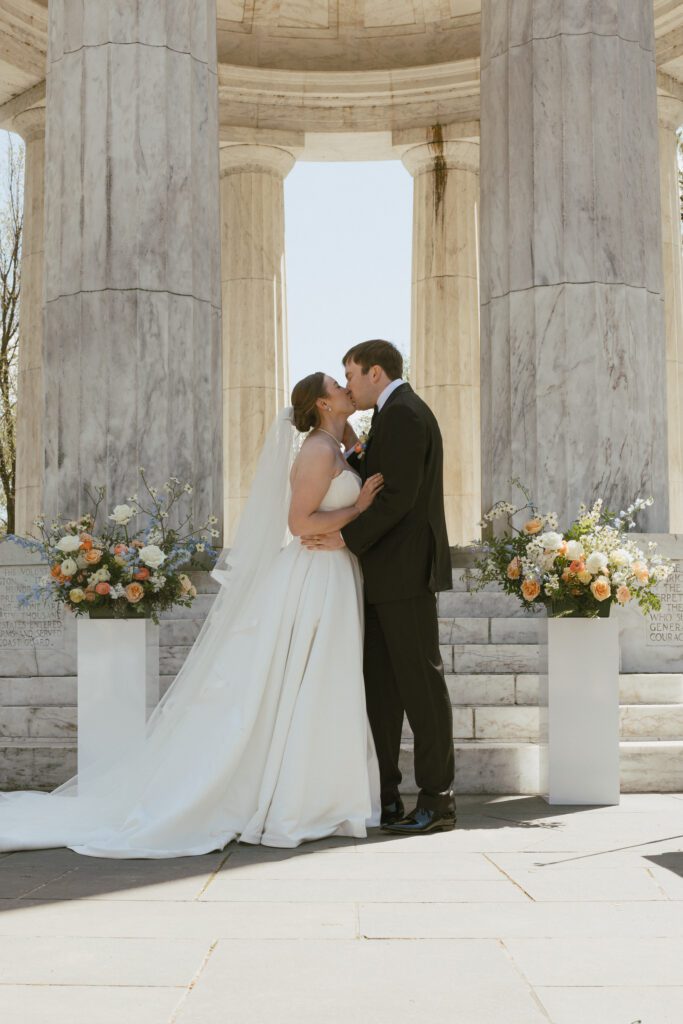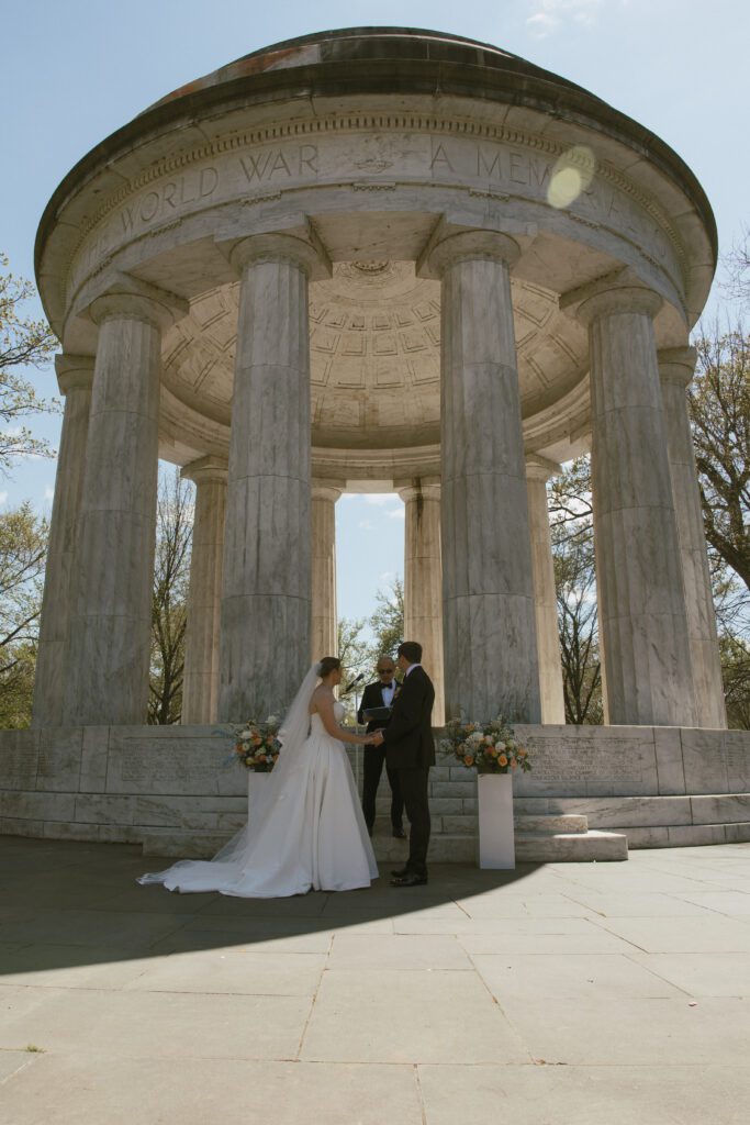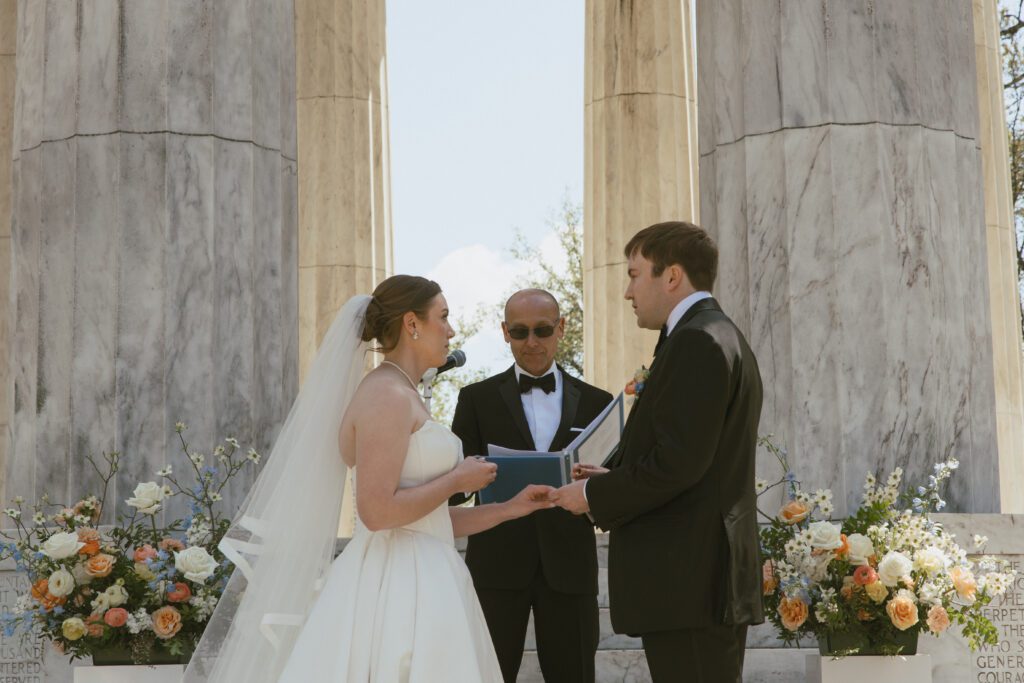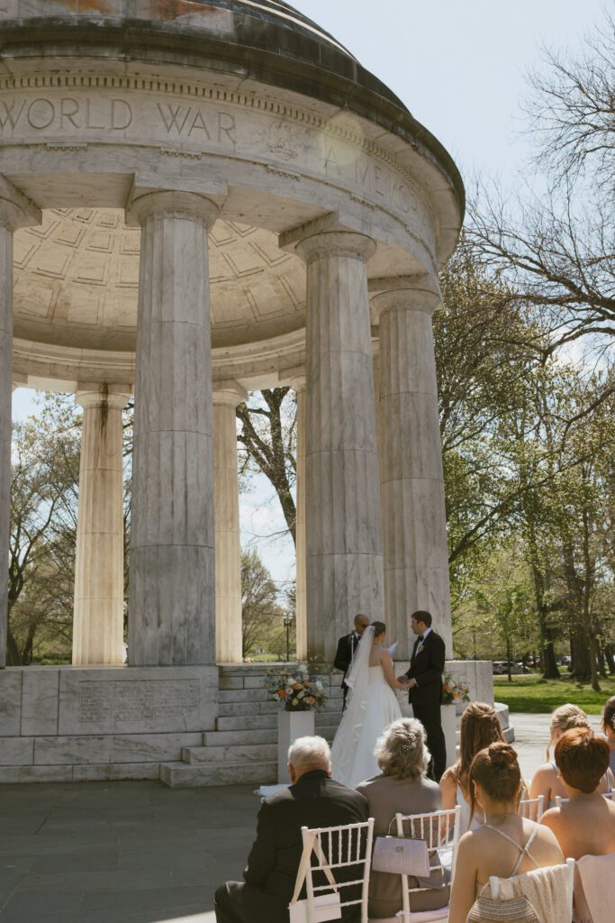 Monica & Ryan decided to skip a first look, which made their ceremony all the more meaningful. They saw each other for the first time as Monica walked down the aisle at the DC War Memorial, an iconic and intimate setting tucked along the National Mall. Monica’s uncle officiated the ceremony, adding a deeply personal touch, and the two exchanged the sweetest, most heartfelt vows in front of their loved ones.