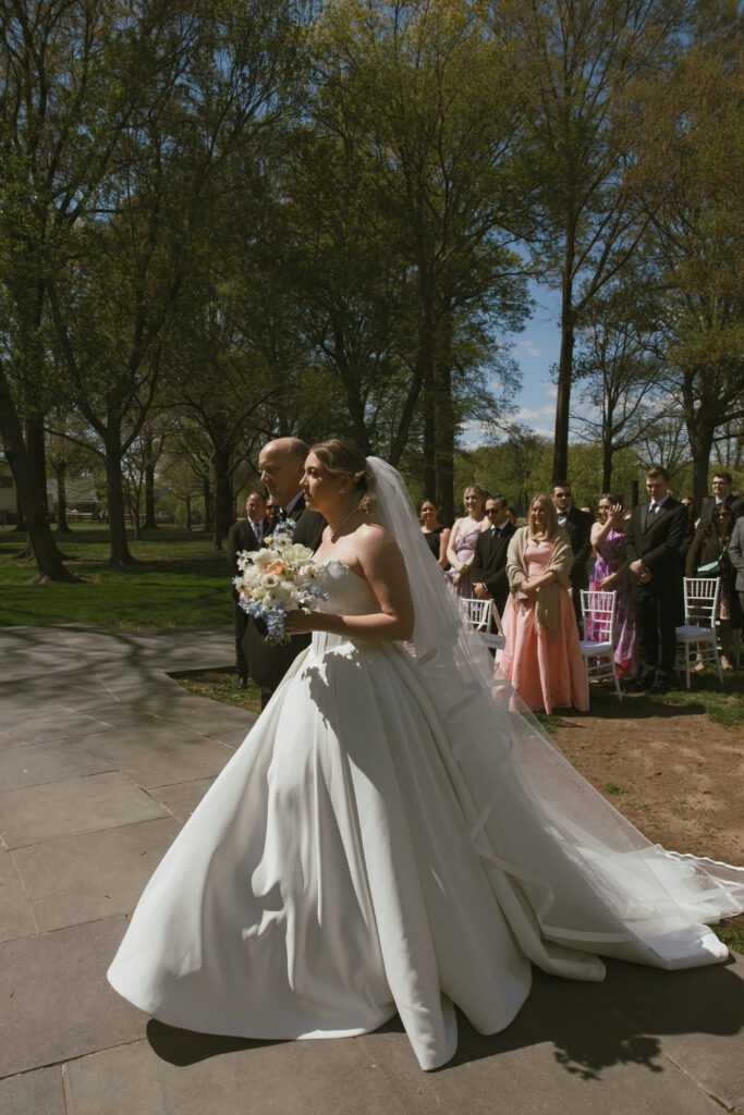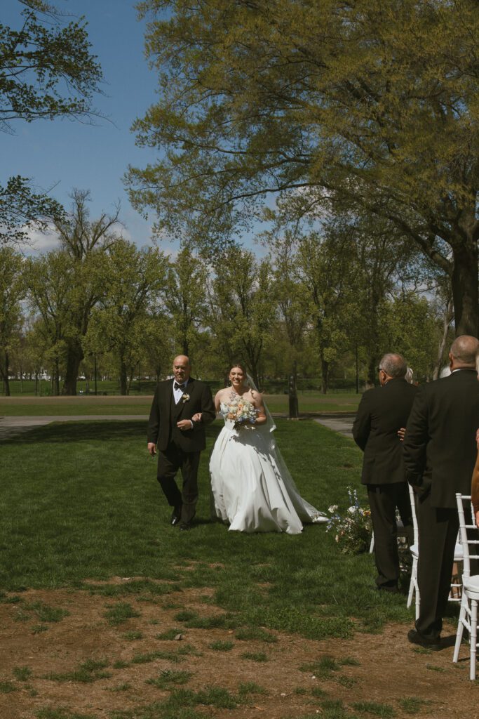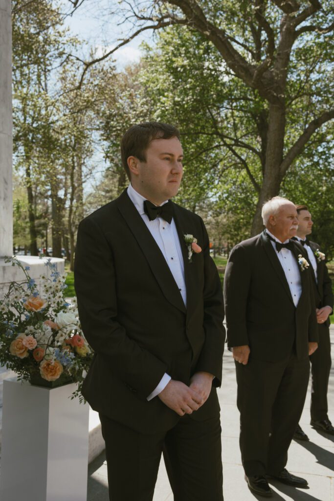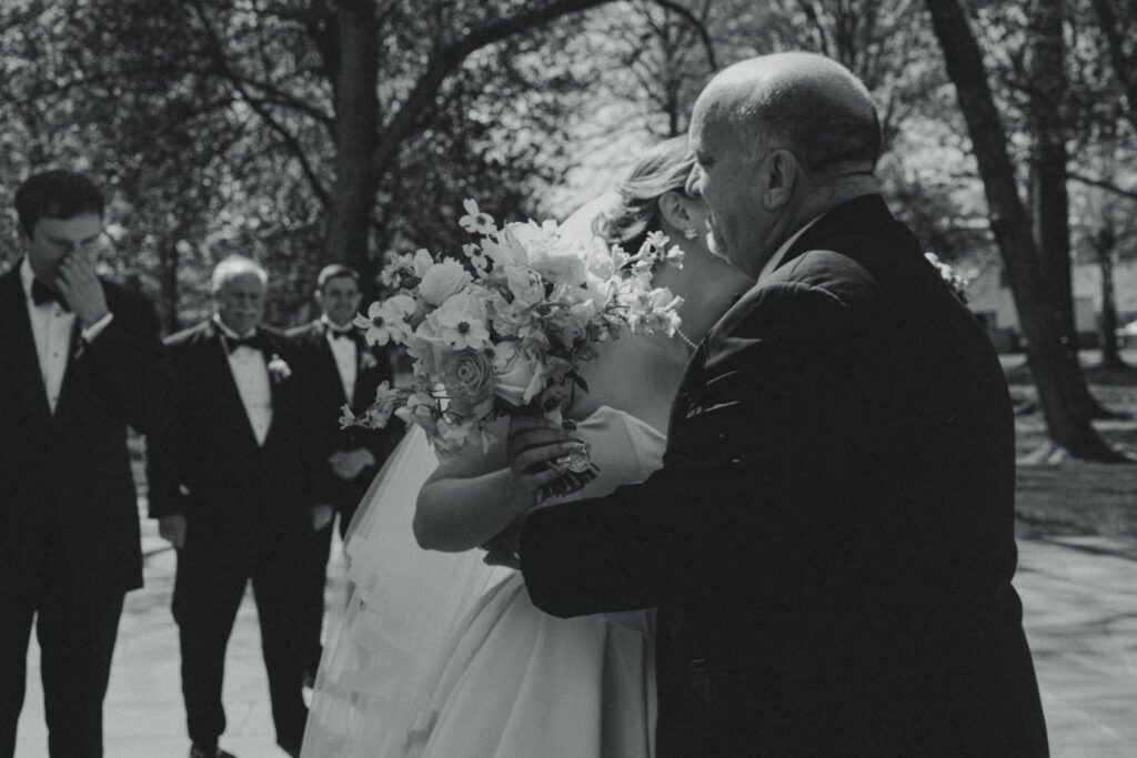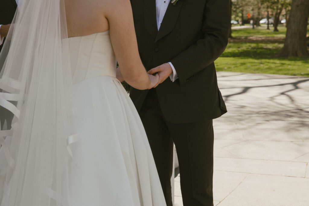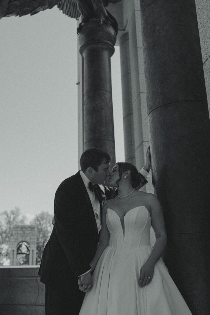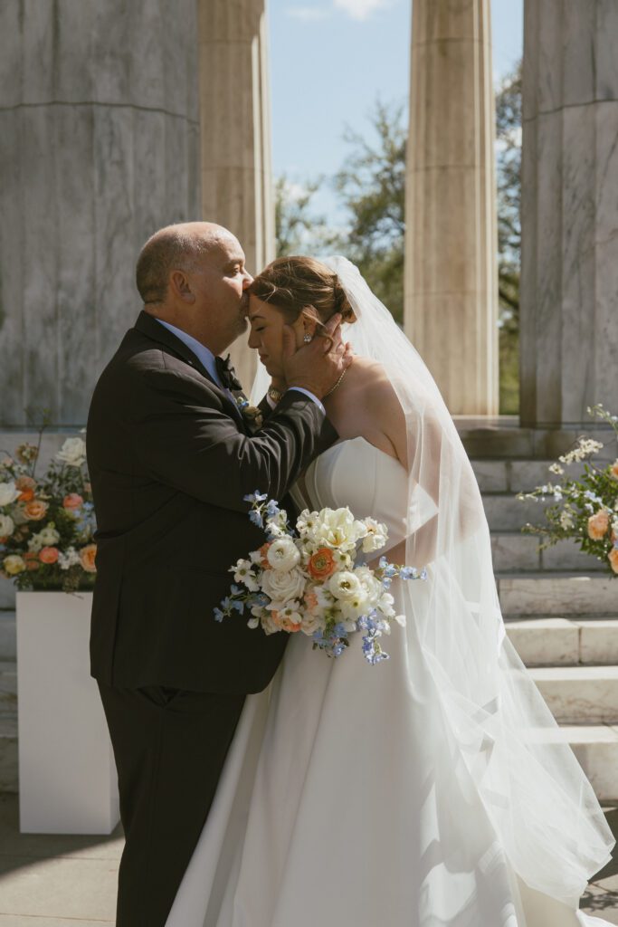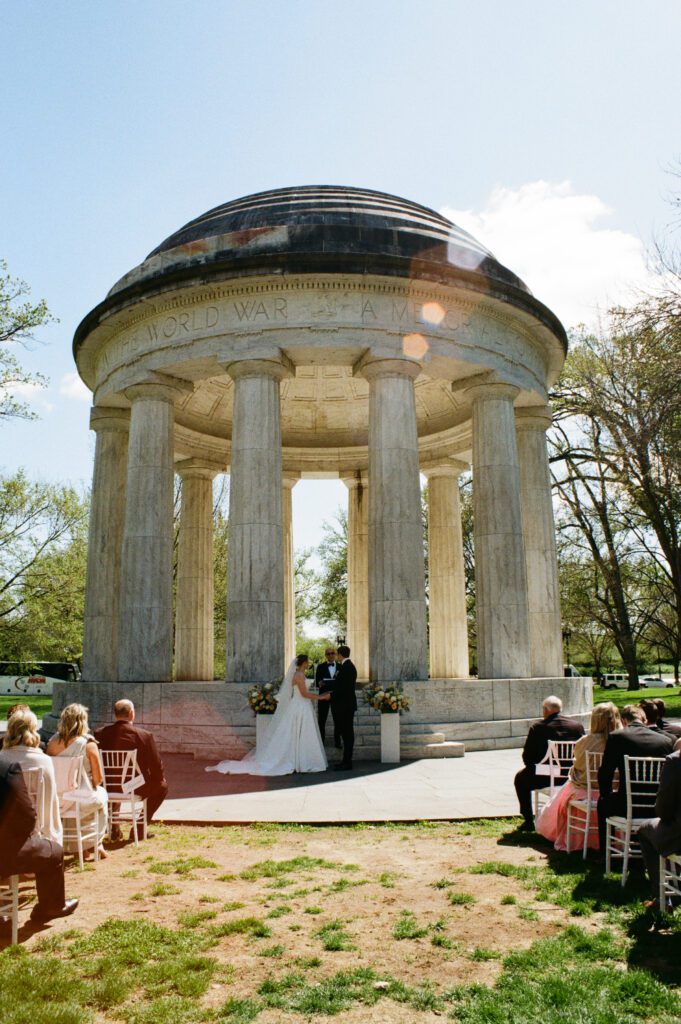 Monica & Ryan decided to skip a first look, which made their ceremony all the more meaningful. They saw each other for the first time as Monica walked down the aisle at the DC War Memorial, an iconic and intimate setting tucked along the National Mall. Monica’s uncle officiated the ceremony, adding a deeply personal touch, and the two exchanged the sweetest, most heartfelt vows in front of their loved ones.