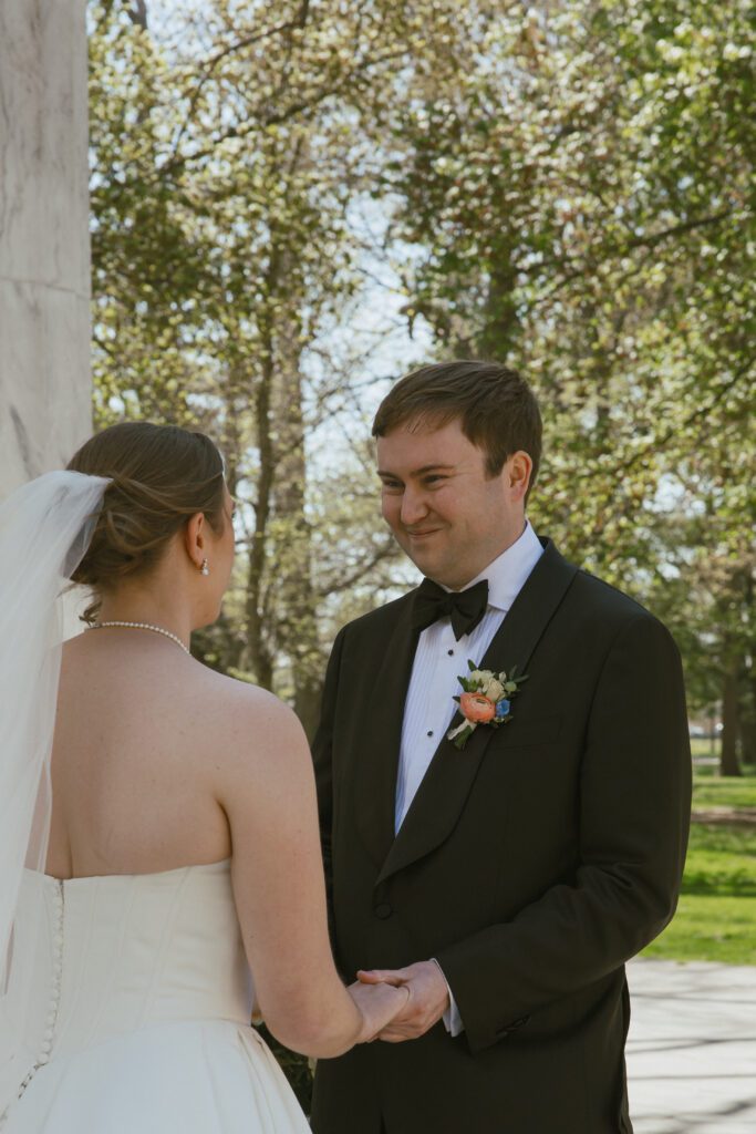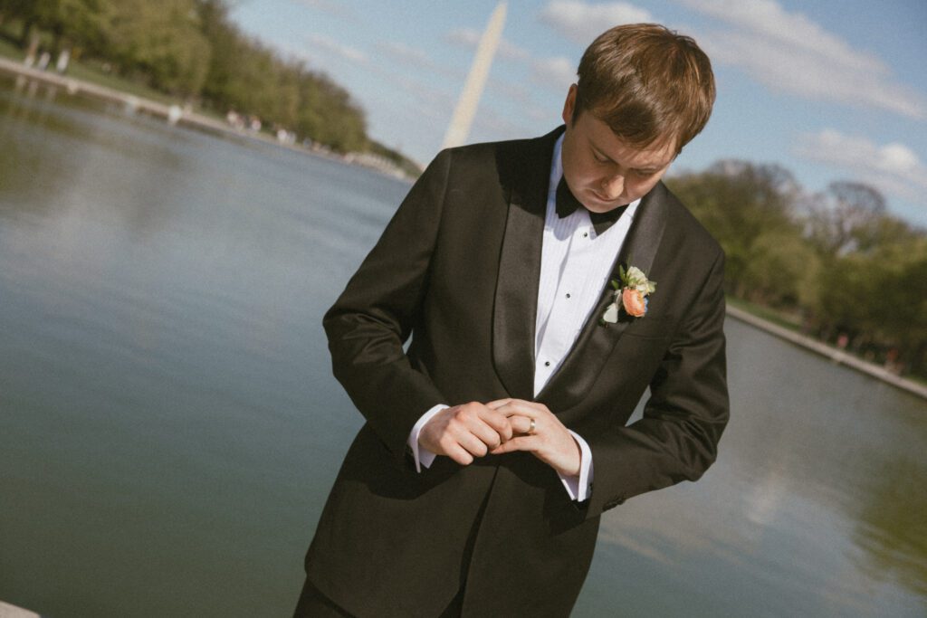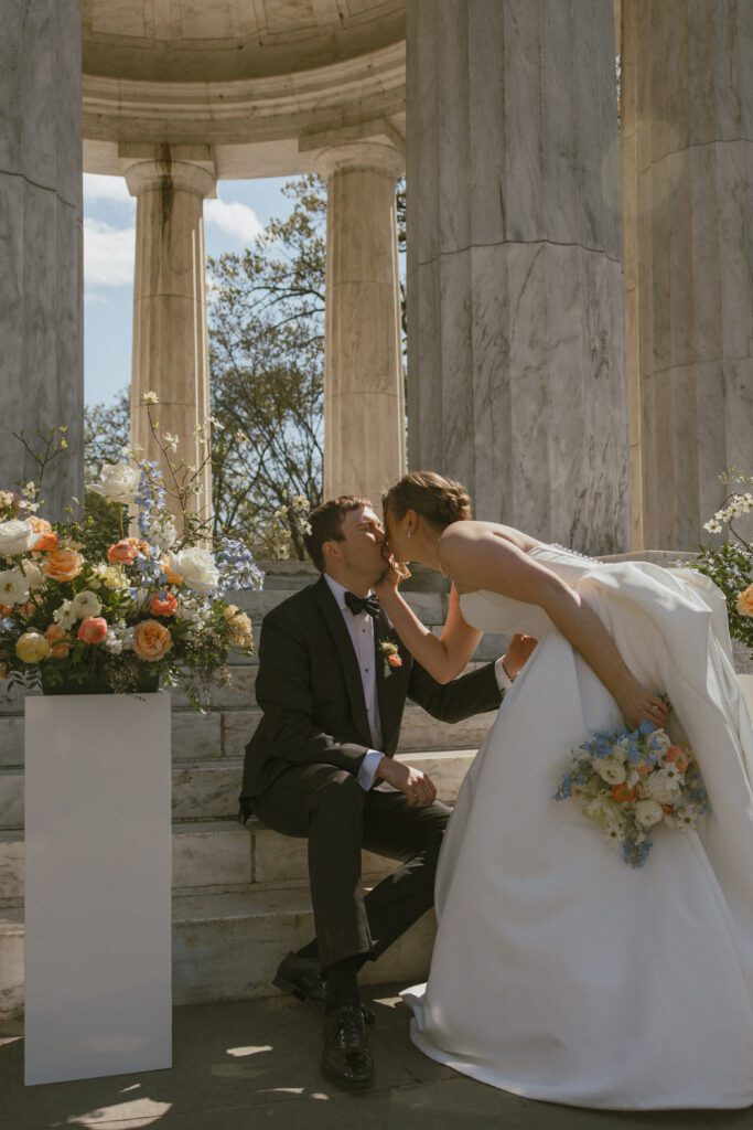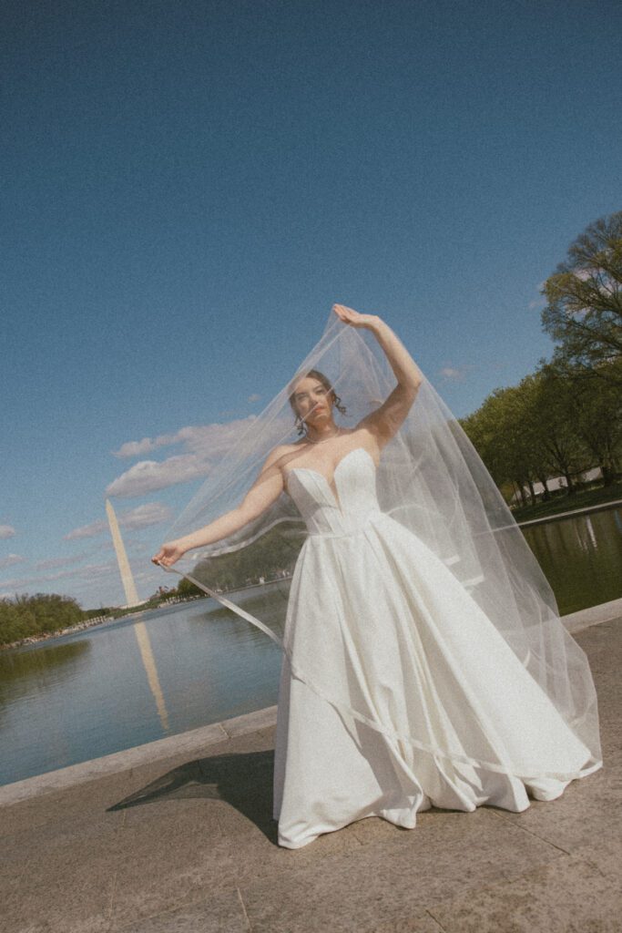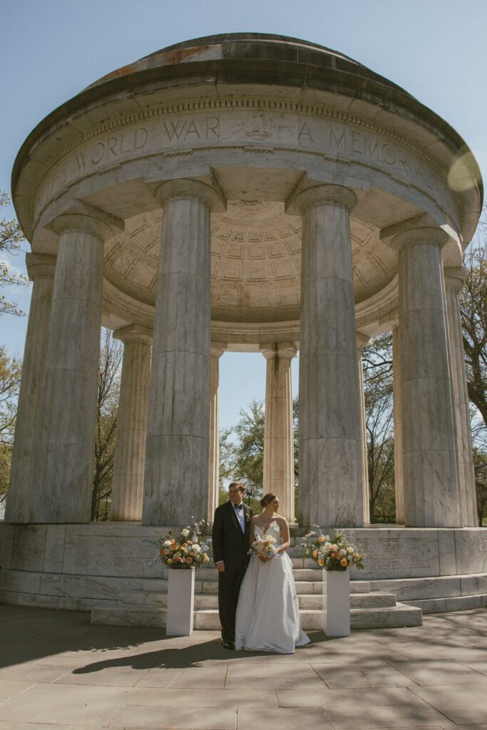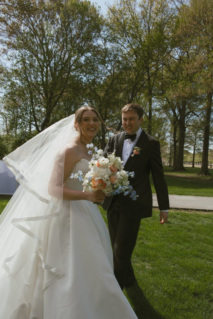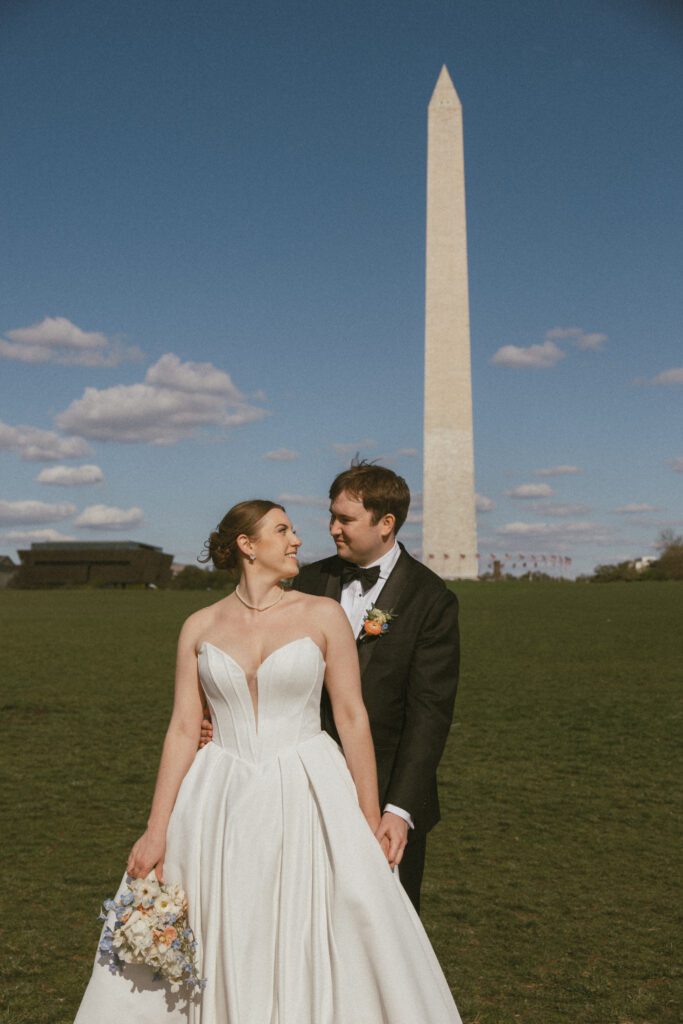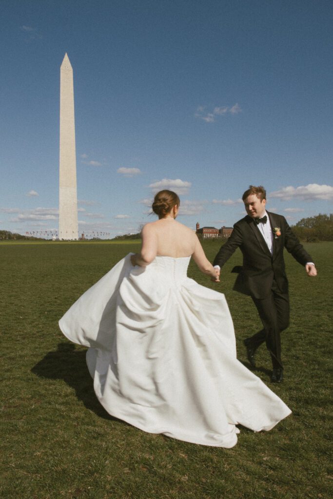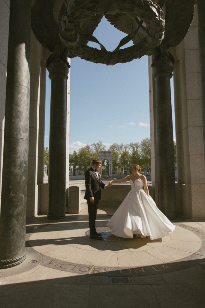 Following the ceremony, the newlyweds soaked in the moments, and the city, by wandering the National Mall for portraits. From the Lincoln Memorial to the Reflecting Pool and the World War II Memorial, their photos captured both the grandeur of DC and their undeniable joy.