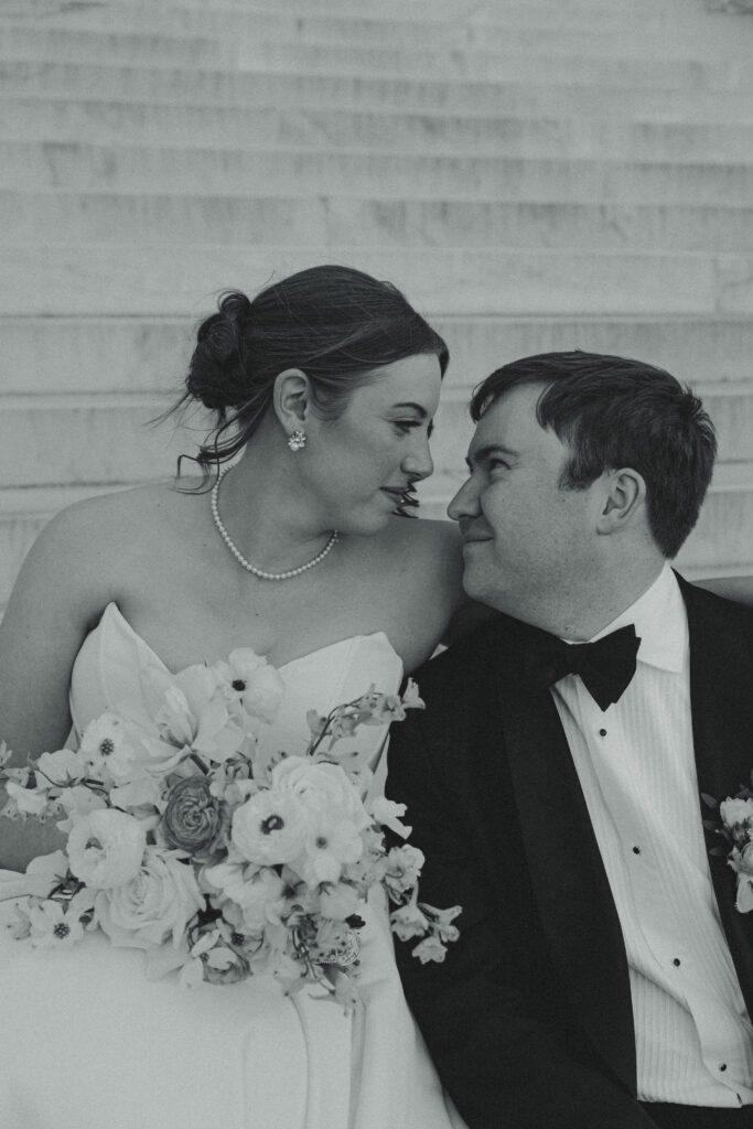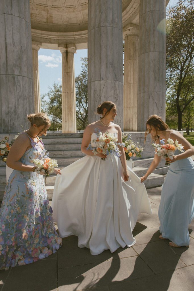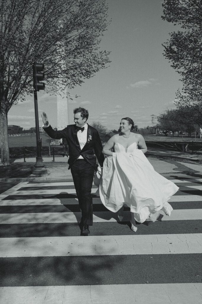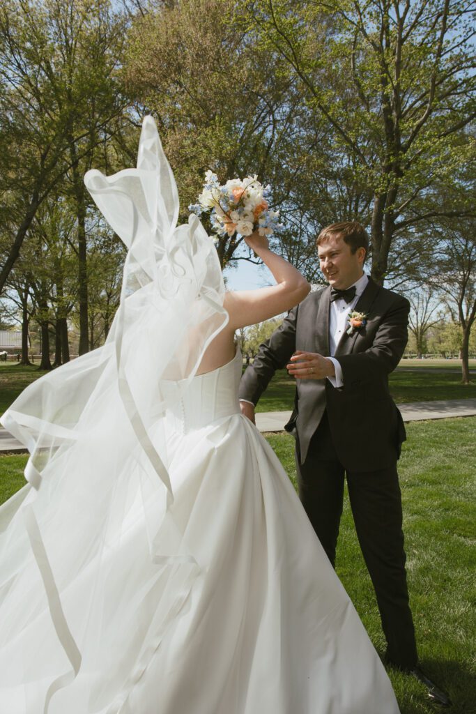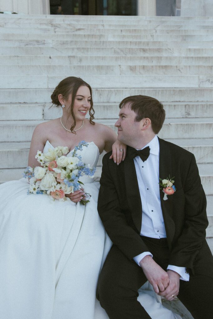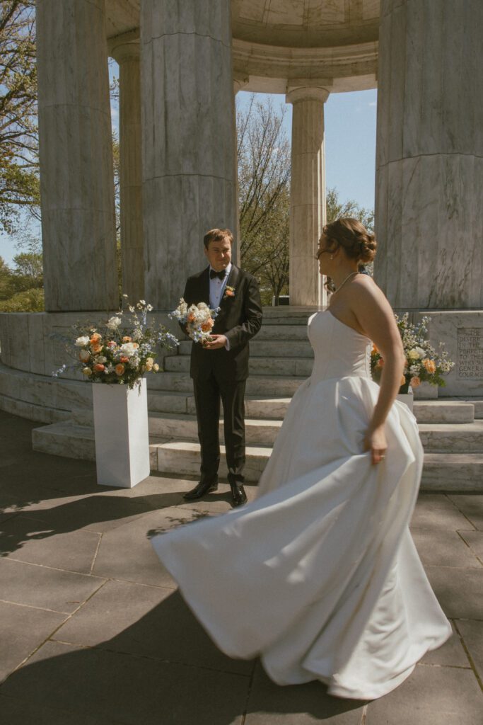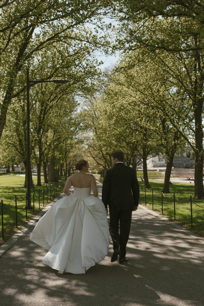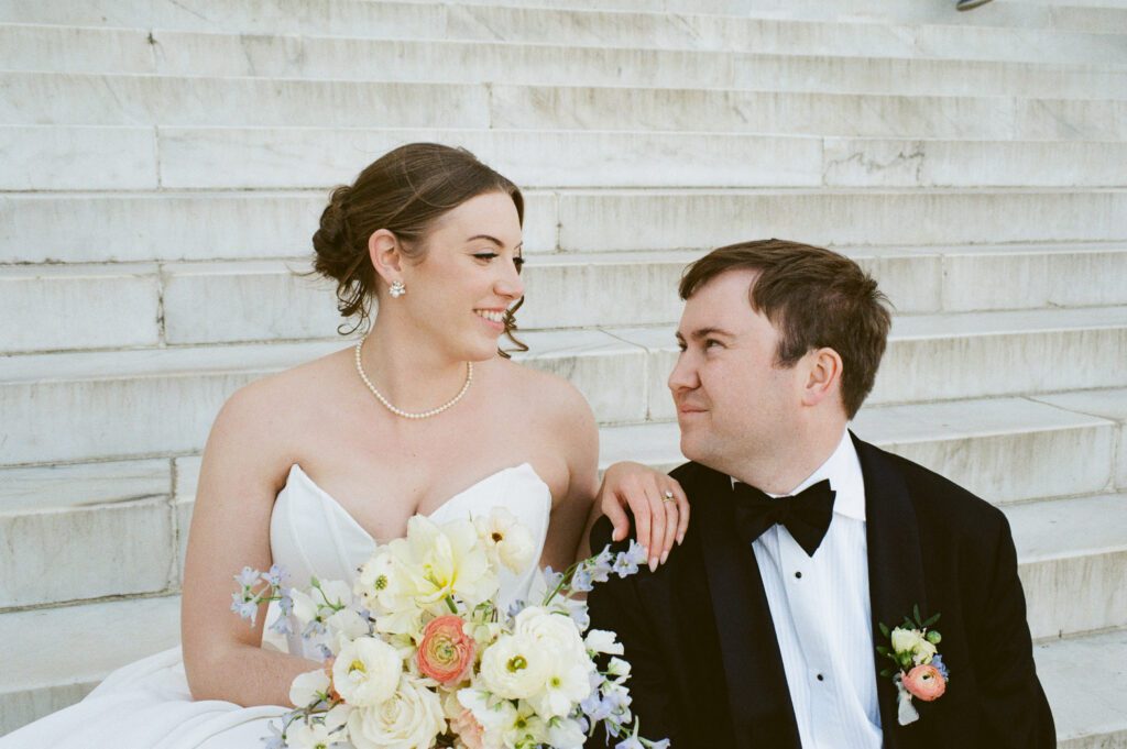 Following the ceremony, the newlyweds soaked in the moments, and the city, by wandering the National Mall for portraits. From the Lincoln Memorial to the Reflecting Pool and the World War II Memorial, their photos captured both the grandeur of DC and their undeniable joy.