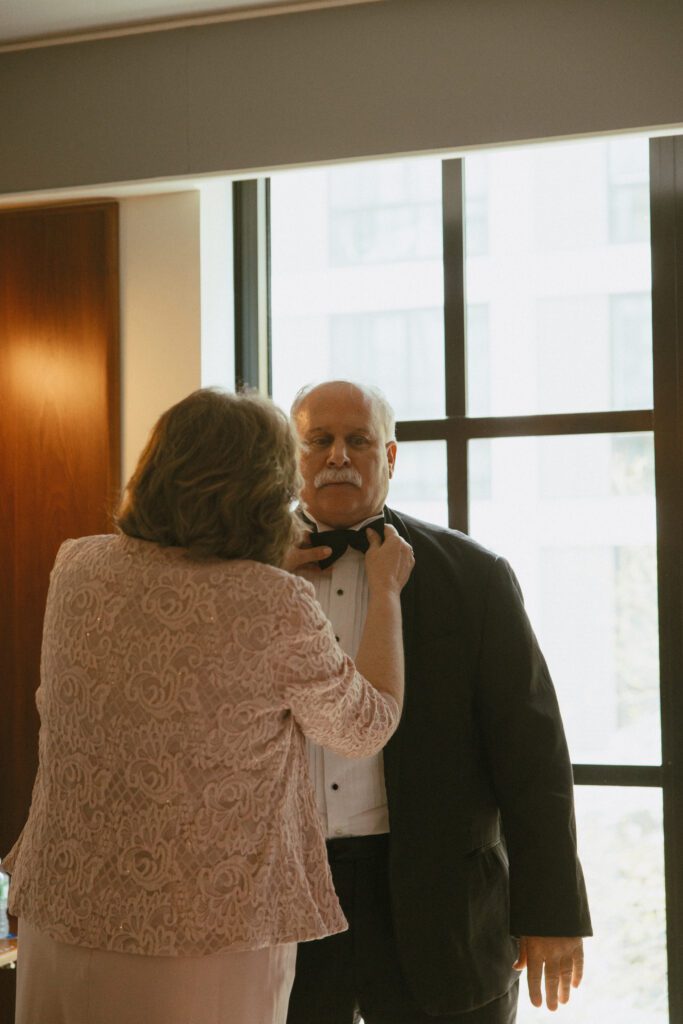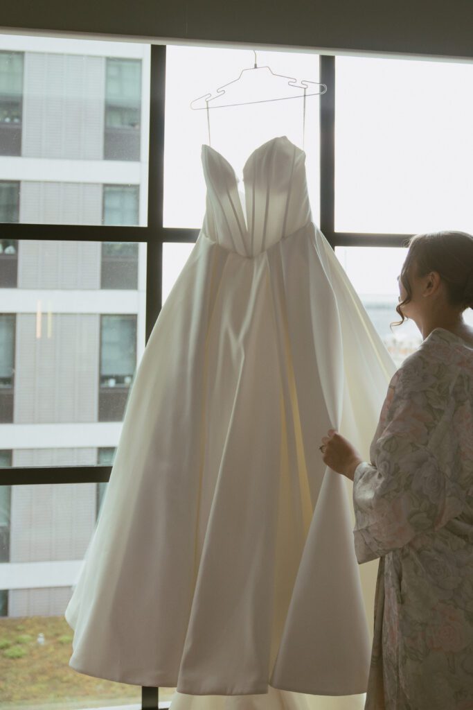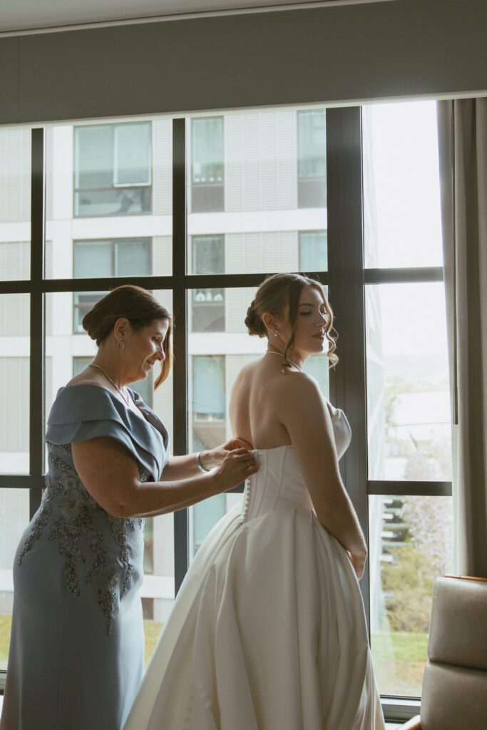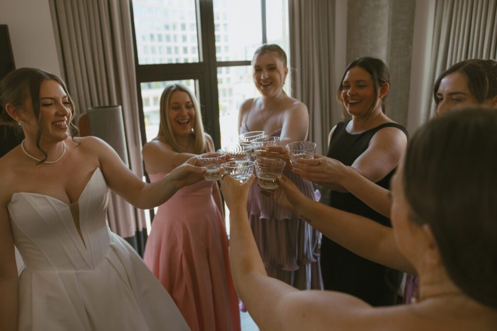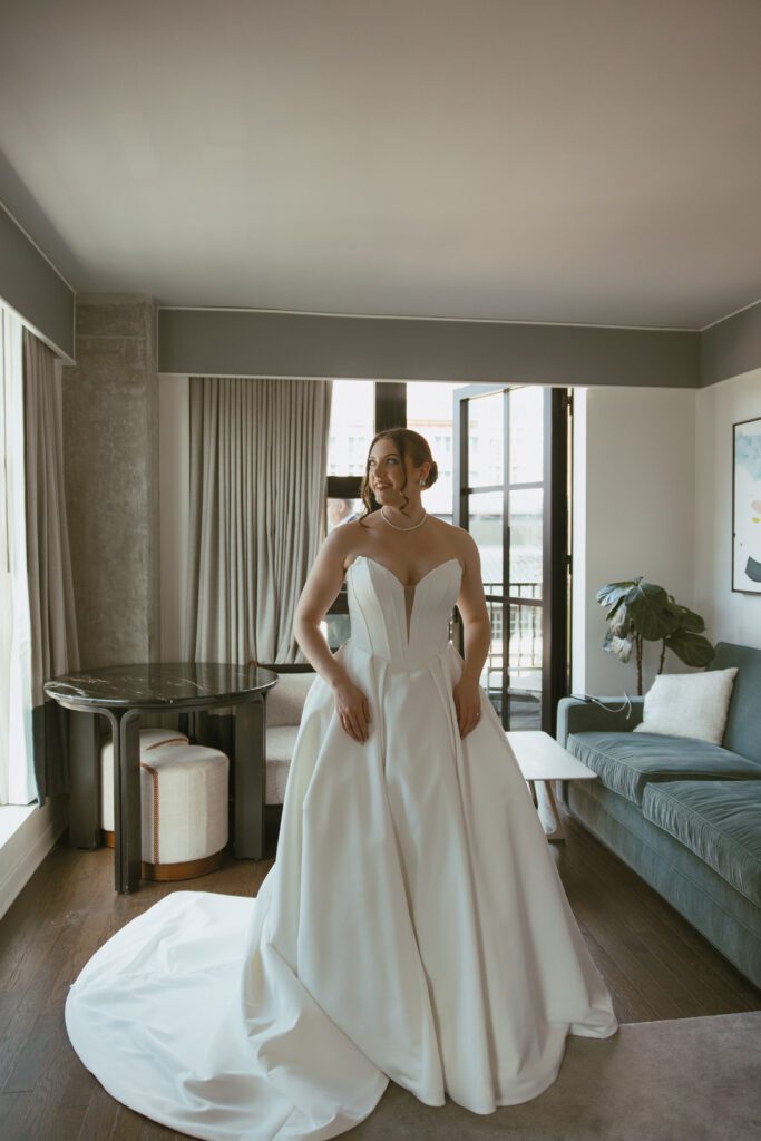 The day began in Navy Yard, where Monica & Ryan got ready with their crews at the Thompson Washington DC Hotel. While they chose to have a small wedding party of just two members each, they also invited several of their closest friends to join them throughout the morning. Their morning was relaxed and filled with laughter, champagne, and joyful anticipation.