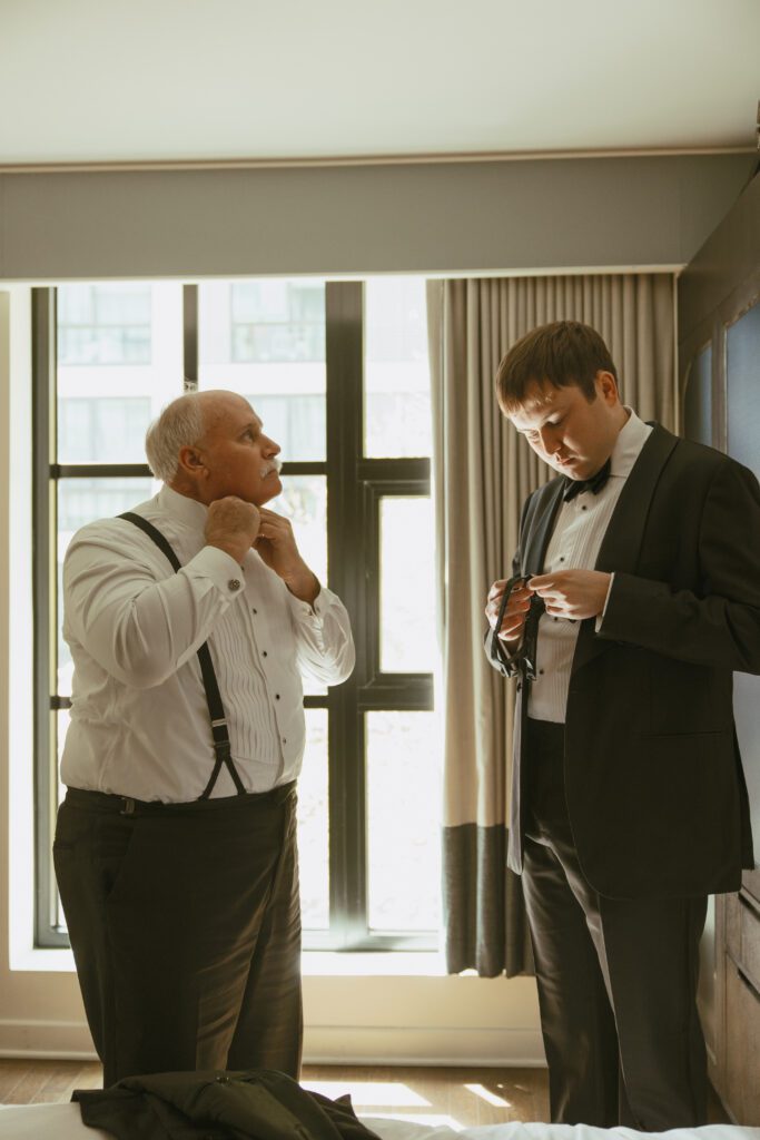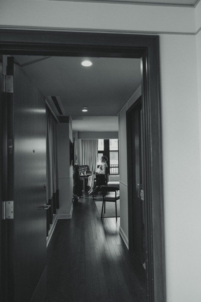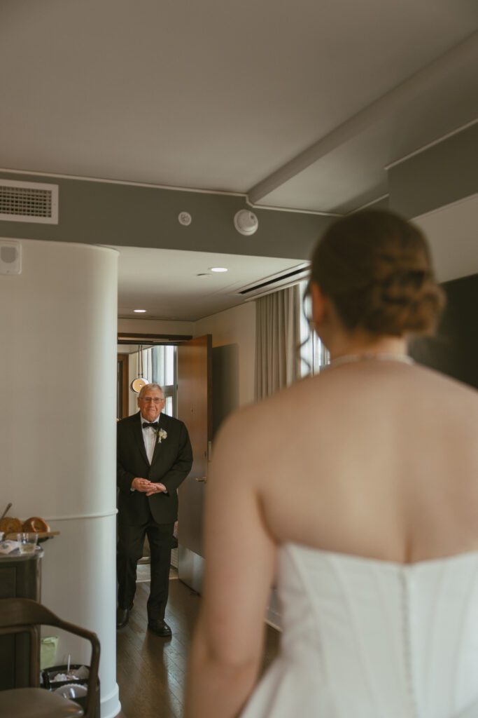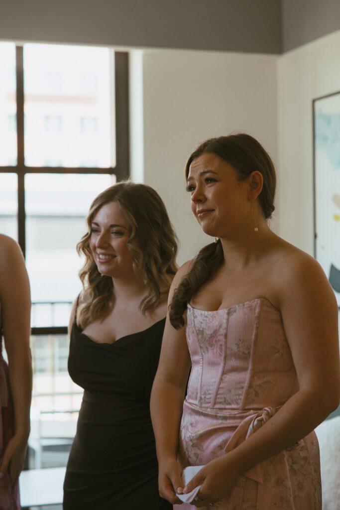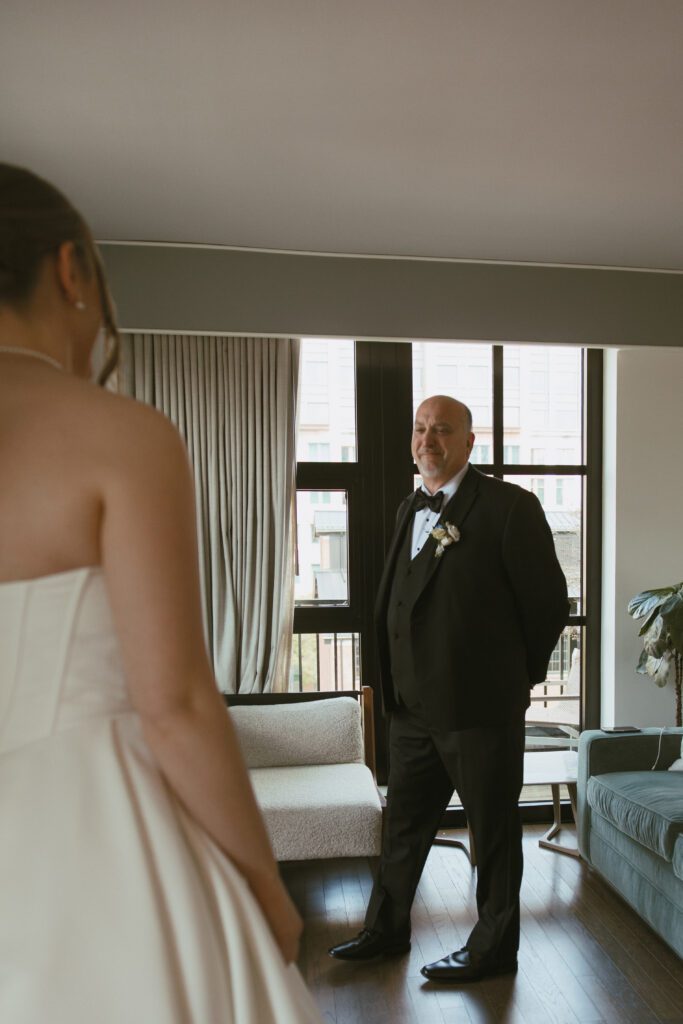 The day began in Navy Yard, where Monica & Ryan got ready with their crews at the Thompson Washington DC Hotel. While they chose to have a small wedding party of just two members each, they also invited several of their closest friends to join them throughout the morning. Their morning was relaxed and filled with laughter, champagne, and joyful anticipation.